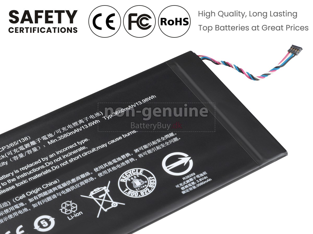 4Når den ikke er i brug i lang tid, skal Acer MLP2964137 batteri tages ud og placeres på et køligt og tørt sted, og der skal hver 2-3 måneder udføres en opladnings- og afladningscyklus for at forhindre skade forårsaget af overladning forårsaget ved naturlig udledning.