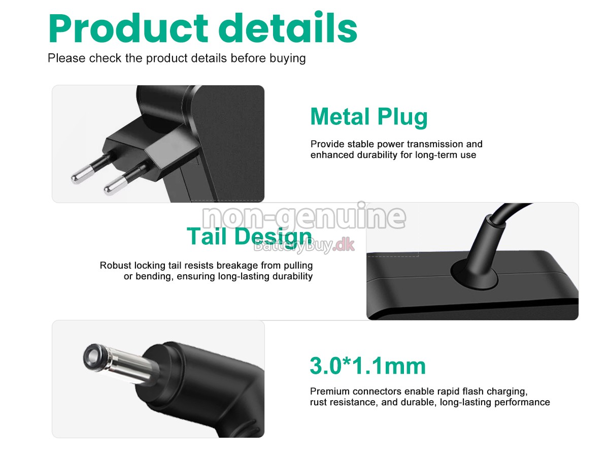 Vær opmærksom på, at der på markedet findes adapterproducenter, der bruger lavkvalitetskomponenter og lokker kunder med lave priser, men disse produkter har ofte en kort levetid, er vanskelige at vedligeholde og kan endda skade din udstyr. Vores Acer 45W 19V-2.37A 100-240V~1.6A 50/60HZ adapter gennemgår strenge tests for at sikre, at de opfylder eller overgår OEM-specifikationerne, så du får det bedste produkt.