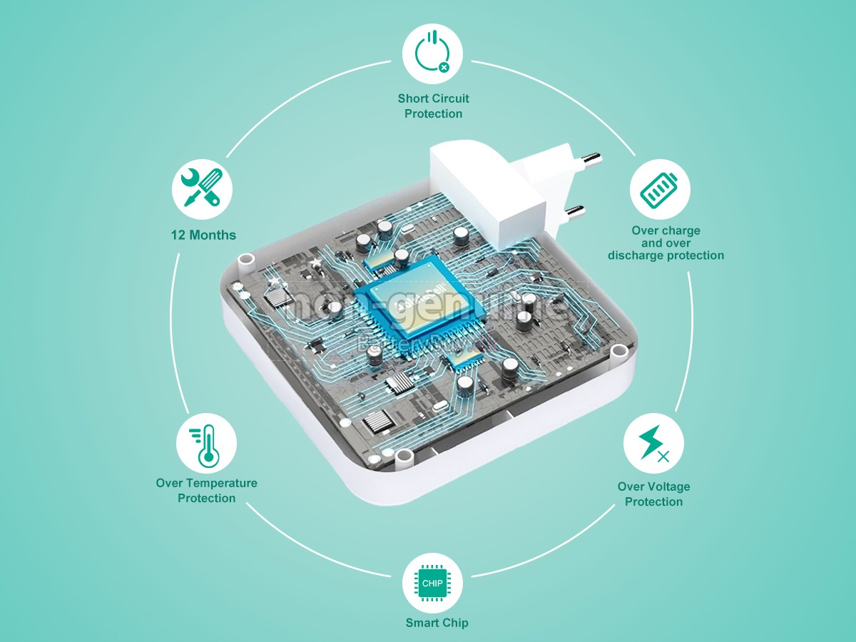 Garanti og tillid – Hver eneste højkvalitets Apple A1947 adapter er udstyret med en beskyttelseschip, der beskytter din udstyr mod overopladning, lavt batteriniveau og kortslutning. Vi gennemgår strenge testprocedurer, herunder "overopladningstest", "spændingstest" og "kortslutningstest", for at sikre, at vores Apple A1947 erstatningsadapter lever op til dine forventninger og er fuldt kompatibel med din enhed.