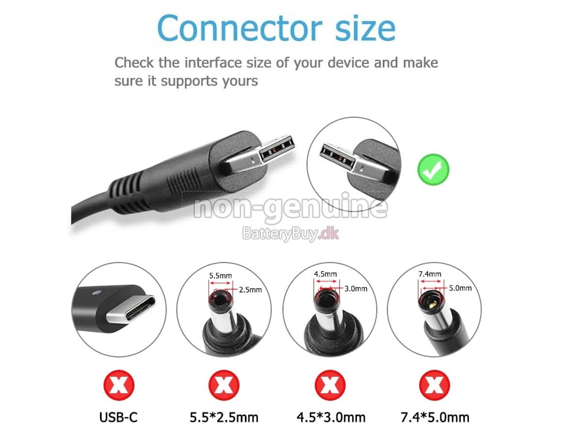 1 Kontrollér oplysningerne på din originale adapter, herunder indgangsspænding, udgangsspænding, udgangsstrøm/effekt og stiktype.