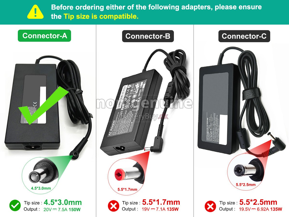 Vær opmærksom på, at der på markedet findes adapterproducenter, der bruger lavkvalitetskomponenter og lokker kunder med lave priser, men disse produkter har ofte en kort levetid, er vanskelige at vedligeholde og kan endda skade din udstyr. Vores MSI A18-135P1A adapter gennemgår strenge tests for at sikre, at de opfylder eller overgår OEM-specifikationerne, så du får det bedste produkt.