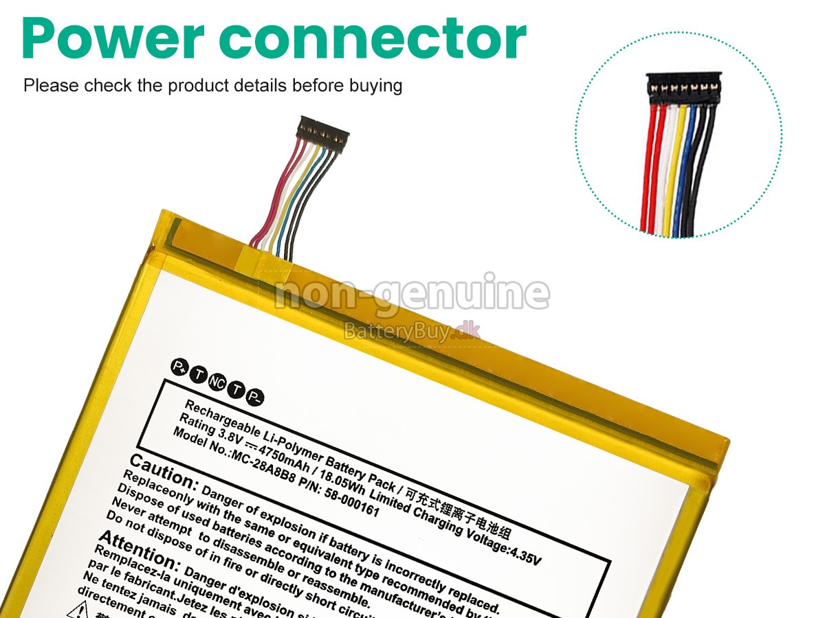 Hvert Høj kvalitet Amazon MC-28A8B8 batteri er født med en beskyttelseschip. Når erstatnings batteri Amazon MC-28A8B8 er produceret, vil det gennemgå en række tests som "overcharge", "resist voltage" og "short circuit". Efter flere skaljusteringer vil batteri til Amazon MC-28A8B8 være fuldt kompatible med dine bærbare computere.