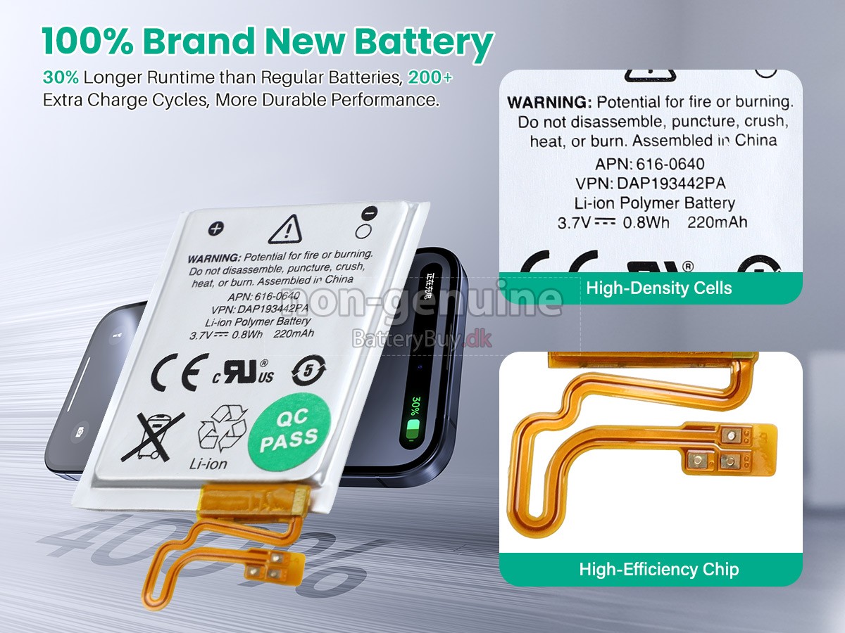 Nogle batteriproducenter bruger ringere komponenter for at kunne tiltrække kunder til en lavere pris. At købe disse ringere batterier kan forårsage en række problemer som kort batterilevetid, vanskelig vedligeholdelse og endda skade på din yndlingsudstyr. Men du behøver ikke bekymre dig, vi har testet Apple IPOD NANO 7 batteri fra mange forskellige producenter og er altid forpligtet til at give kunderne den højeste kvalitet batteri til udstyr Apple IPOD NANO 7 . Vores Apple IPOD NANO 7 batteri , der ses på BatteryBuy.dk-webstedet, skal testes med tre standardkvalitetskontroller. Vi tilbyder Apple IPOD NANO 7 batteri , der opfylder eller overstiger OEM-specifikationer.