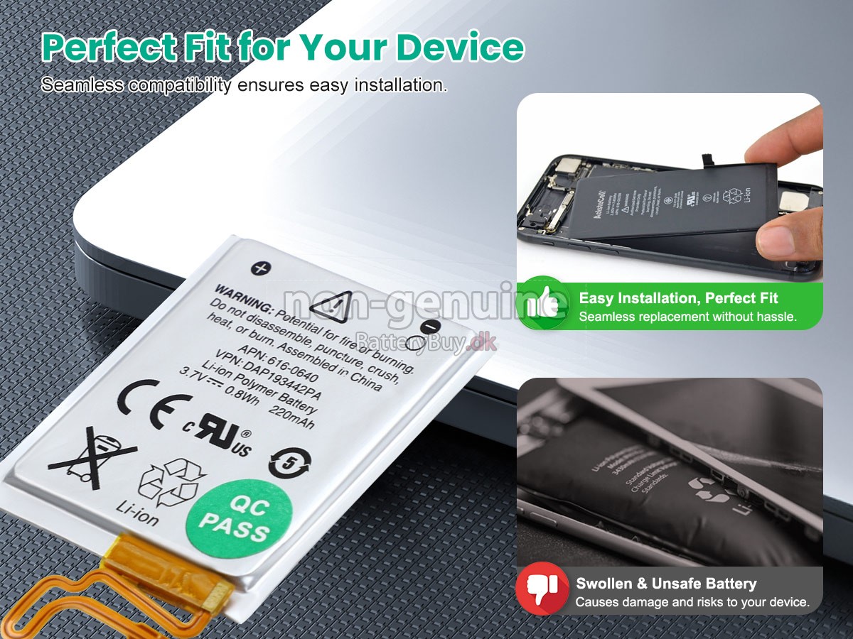 Derudover kan du se mere detaljerede billeder af dit batteri Apple IPOD NANO 7 i "Se større billeder" eller se listen "Kompatibilitet" for at sikre, at du kan købe et erstatnings batteri til din udstyr.