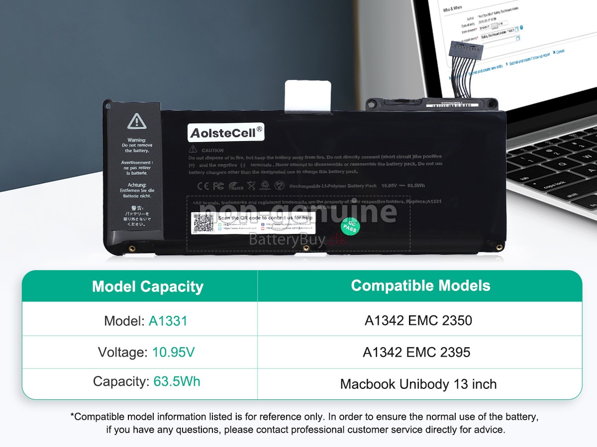 De erstatnings batteri til Apple MacBook MC516LL/A 13.3 inch , der sælges af BatteryBuy.dk, har en 30-dages refusionsgaranti og et års garanti. Vi giver dig mere end bare produkter, og du kan være sikker på. På Batterybuy.dk har vi et veluddannet kundeserviceteam, der er klar til at besvare dine spørgsmål til enhver tid. Hvis du har spørgsmål til vores hjemmeside eller produktioner under købsprocessen, kan du altid kontakte os via e-mail eller online chat. Uanset hvad, vil du få svar inden for 12 timer.