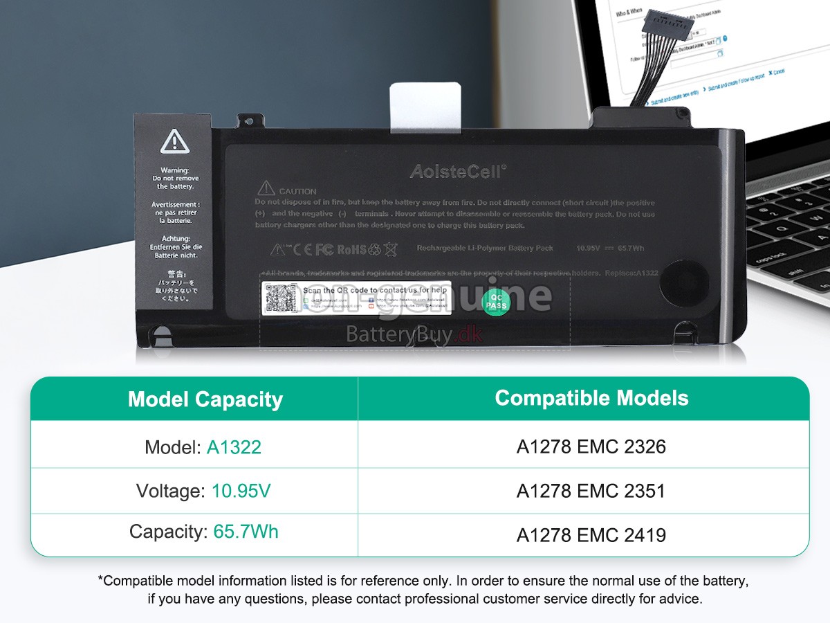 De erstatnings batteri til Apple MacBook Pro 13" MB990LL/A , der sælges af BatteryBuy.dk, har en 30-dages refusionsgaranti og et års garanti. Vi giver dig mere end bare produkter, og du kan være sikker på. På Batterybuy.dk har vi et veluddannet kundeserviceteam, der er klar til at besvare dine spørgsmål til enhver tid. Hvis du har spørgsmål til vores hjemmeside eller produktioner under købsprocessen, kan du altid kontakte os via e-mail eller online chat. Uanset hvad, vil du få svar inden for 12 timer.
