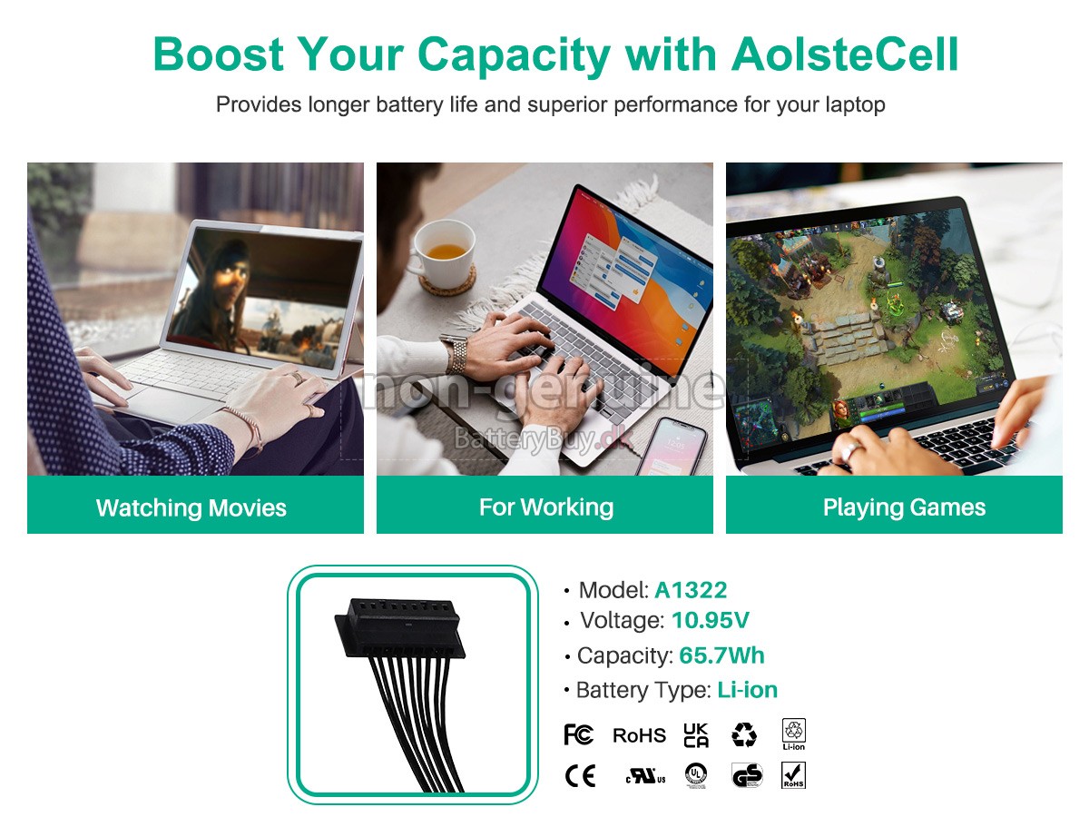 Nogle laptop batteriproducenter bruger ringere komponenter for at kunne tiltrække kunder til en lavere pris. At købe disse ringere batterier kan forårsage en række problemer som kort batterilevetid, vanskelig vedligeholdelse og endda skade på din yndlingscomputer. Men du behøver ikke bekymre dig, vi har testet Apple MacBook Pro 13" MB990LL/A laptop/Bærbar batteri fra mange forskellige producenter og er altid forpligtet til at give kunderne den højeste kvalitet bærbar computer batteri til Apple MacBook Pro 13" MB990LL/A . Vores Apple MacBook Pro 13" MB990LL/A batteri , der ses på BatteryBuy.dk-webstedet, skal testes med tre standardkvalitetskontroller. Vi tilbyder Apple MacBook Pro 13" MB990LL/A batteri , der opfylder eller overstiger OEM-specifikationer.