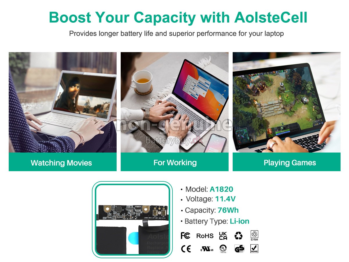 Laptop batteri til Apple MacBook Pro 15 inch TOUCH A1707(Late 2016) er lavet af ABS plastbelægning og original IC beskyttelse chip, som er ultra stor kapacitet, stabil og holdbar. De helt nye ægte laptop erstatnings batteri til Apple MacBook Pro 15 inch TOUCH A1707(Late 2016), der sælges i denne butik, er alle fra professionelle producenter.Batterimaterialer leveres af topvirksomheder som Sony, Panasonic, Sanyo, and Samsung , Hvert Høj kvalitet Apple MacBook Pro 15 inch TOUCH A1707(Late 2016) batteri til bærbare computere har bestået CE, UL og andre sikkerhedscertificeringer og har fremragende kvalitet, så du ikke mister Apple's originale batteri. 30-dages refusionsgaranti og et års garanti, så du kan købe med tillid!