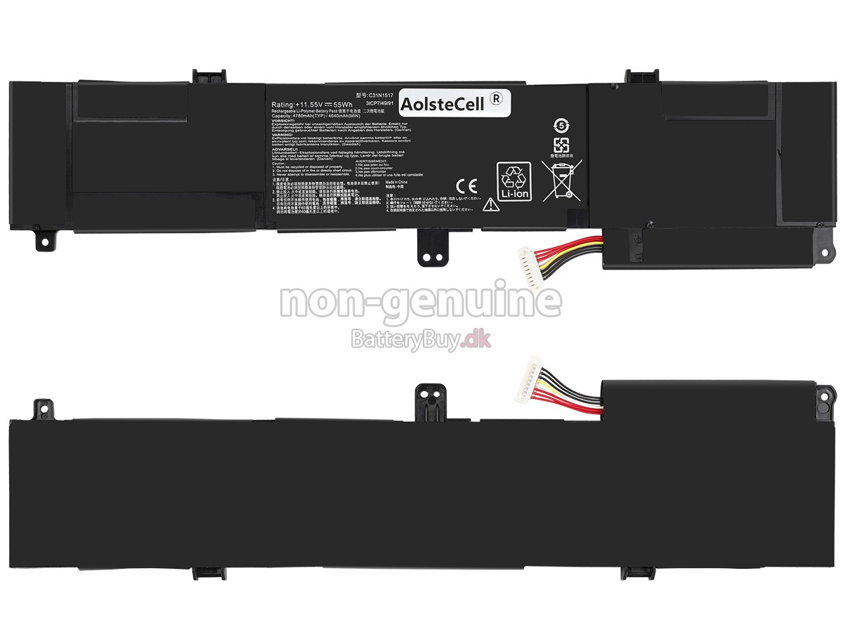 4Når den ikke er i brug i lang tid, skal Asus 0B200-01840100 batteri tages ud og placeres på et køligt og tørt sted, og der skal hver 2-3 måneder udføres en opladnings- og afladningscyklus for at forhindre skade forårsaget af overladning forårsaget ved naturlig udledning.
