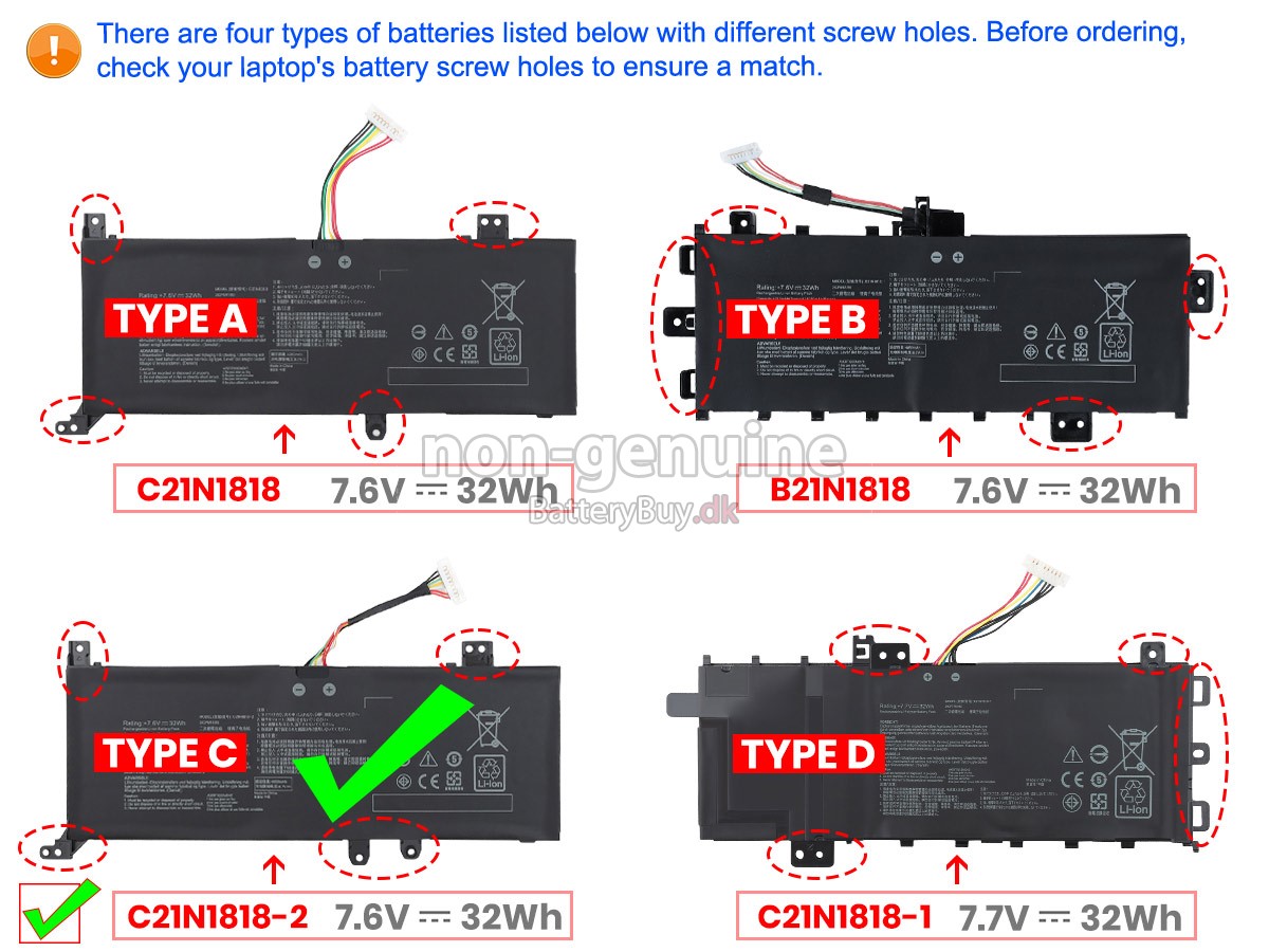 There are 2 types battery, before placing an order please ensure your old battery model name is [C21N1818], not [C21N1818-1] or [C21N1818-2]. - SKUDKB6760