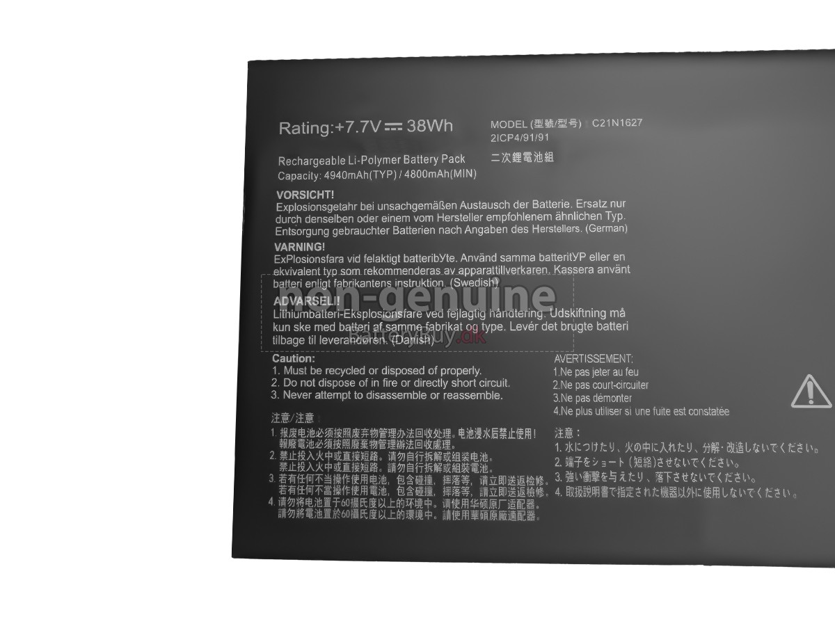 Nogle laptop batteriproducenter bruger ringere komponenter for at kunne tiltrække kunder til en lavere pris. At købe disse ringere batterier kan forårsage en række problemer som kort batterilevetid, vanskelig vedligeholdelse og endda skade på din yndlingscomputer. Men du behøver ikke bekymre dig, vi har testet Asus Chromebook Flip C101PA-3J laptop/Bærbar batteri fra mange forskellige producenter og er altid forpligtet til at give kunderne den højeste kvalitet bærbar computer batteri til Asus Chromebook Flip C101PA-3J . Vores Asus Chromebook Flip C101PA-3J batteri , der ses på BatteryBuy.dk-webstedet, skal testes med tre standardkvalitetskontroller. Vi tilbyder Asus Chromebook Flip C101PA-3J batteri , der opfylder eller overstiger OEM-specifikationer.