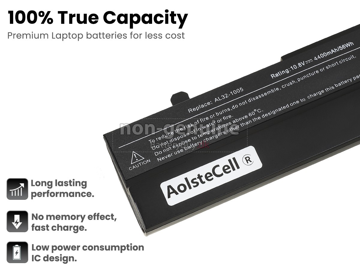 Derudover kan du se mere detaljerede billeder af dit laptop batteri Asus Eee PC 1005PE-MU17-WT i "Se større billeder" eller se listen "Kompatibilitet" for at sikre, at du kan købe et erstatnings batteri til din bærbare computer.