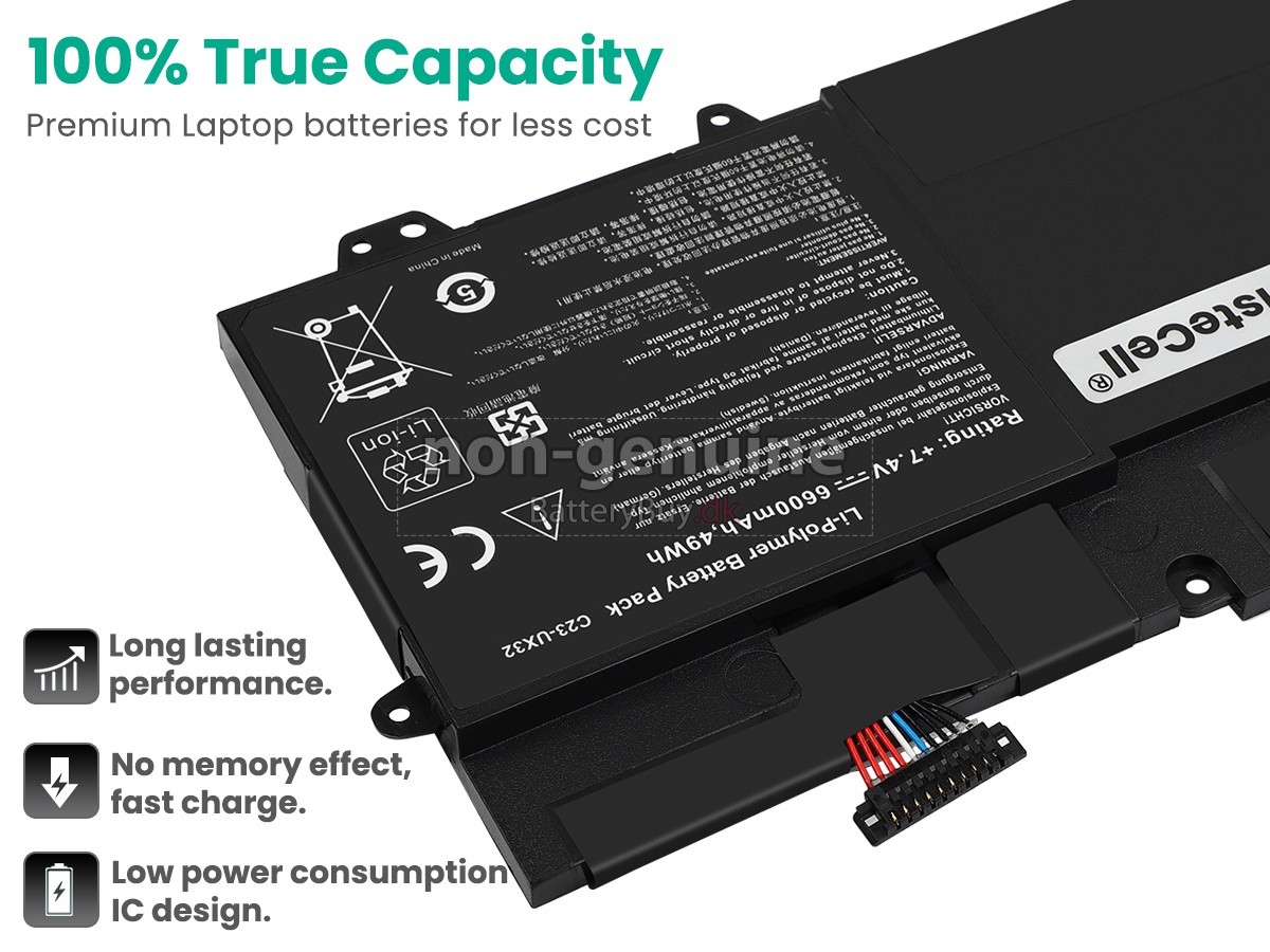 Derudover kan du se mere detaljerede billeder af dit laptop batteri Asus ZenBook UX32VD-DS72 i "Se større billeder" eller se listen "Kompatibilitet" for at sikre, at du kan købe et erstatnings batteri til din bærbare computer.