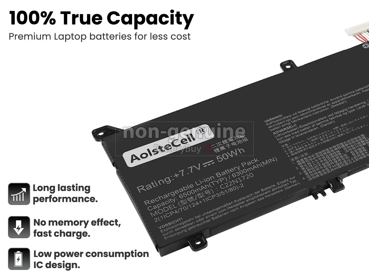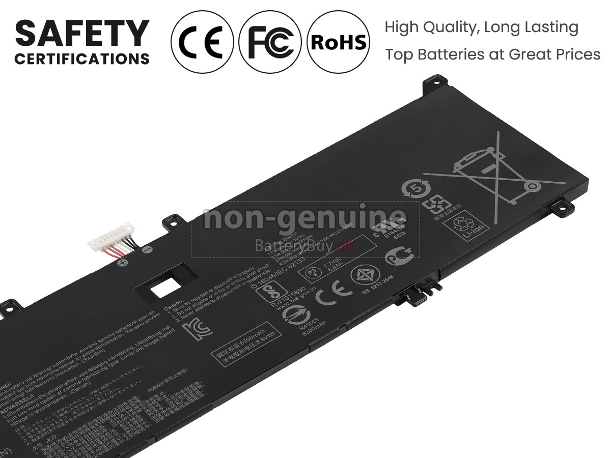 Nogle laptop batteriproducenter bruger ringere komponenter for at kunne tiltrække kunder til en lavere pris. At købe disse ringere batterier kan forårsage en række problemer som kort batterilevetid, vanskelig vedligeholdelse og endda skade på din yndlingscomputer. Men du behøver ikke bekymre dig, vi har testet Asus ZenBook UX391FA laptop/Bærbar batteri fra mange forskellige producenter og er altid forpligtet til at give kunderne den højeste kvalitet bærbar computer batteri til Asus ZenBook UX391FA . Vores Asus ZenBook UX391FA batteri , der ses på BatteryBuy.dk-webstedet, skal testes med tre standardkvalitetskontroller. Vi tilbyder Asus ZenBook UX391FA batteri , der opfylder eller overstiger OEM-specifikationer.