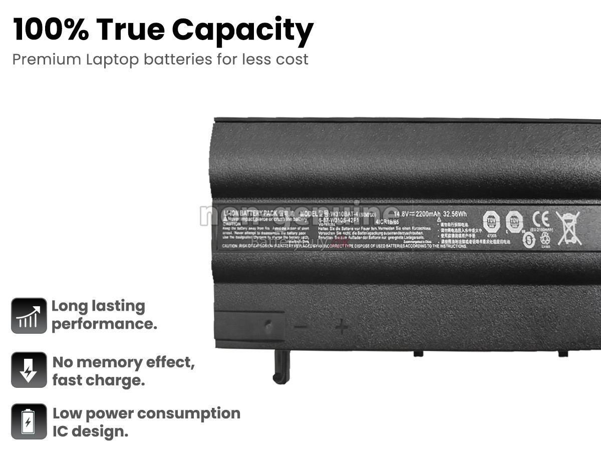 Kontrast til andre hjemmesider, køb Høj kvalitet Clevo 6-87-W310S-42F batteri hos BatteryBuy.dk og du får 20% -50% rabat. Vi minimerer salgsomkostningerne i det maksimale omfang ved direkte at kontakte udenlandske producenter og logistikcentre over hele landet. Vores mål er at give dig de højeste kvalitet erstatnings batteri til Clevo 6-87-W310S-42F til gavn for kunden. Kundens fremmest er vores mål, at give dig tilfredsstillende service og kvalitetsprodukter er vores mål.