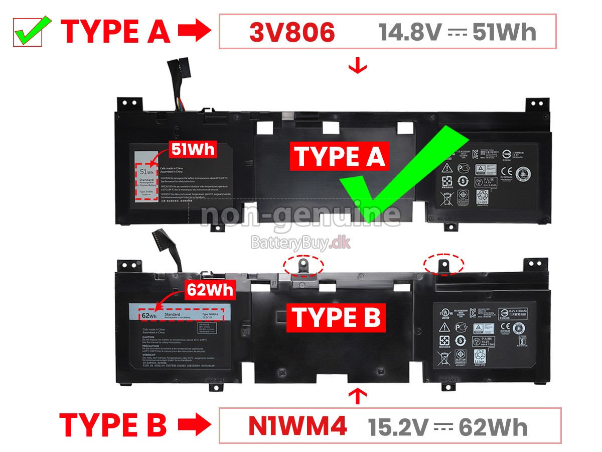 Derudover kan du se mere detaljerede billeder af dit laptop batteri Dell ALW13ER-1708 i "Se større billeder" eller se listen "Kompatibilitet" for at sikre, at du kan købe et erstatnings batteri til din bærbare computer.