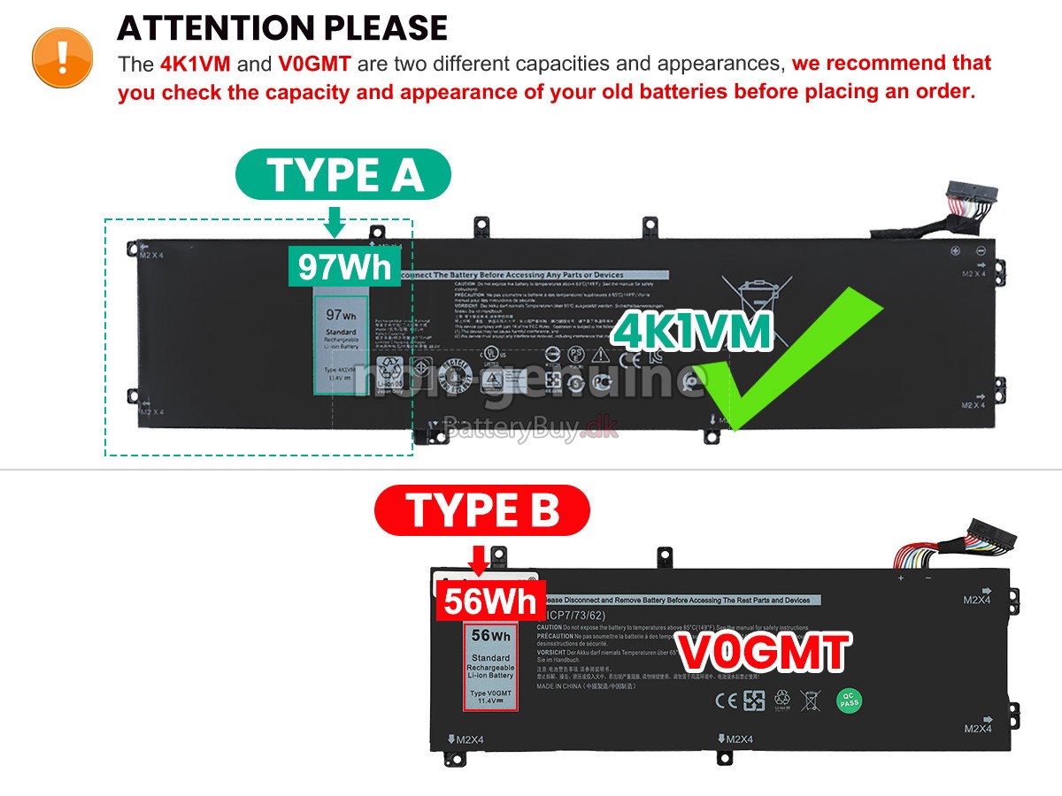 Derudover kan du se mere detaljerede billeder af dit laptop batteri Dell G7 17 7700 i "Se større billeder" eller se listen "Kompatibilitet" for at sikre, at du kan købe et erstatnings batteri til din bærbare computer.
