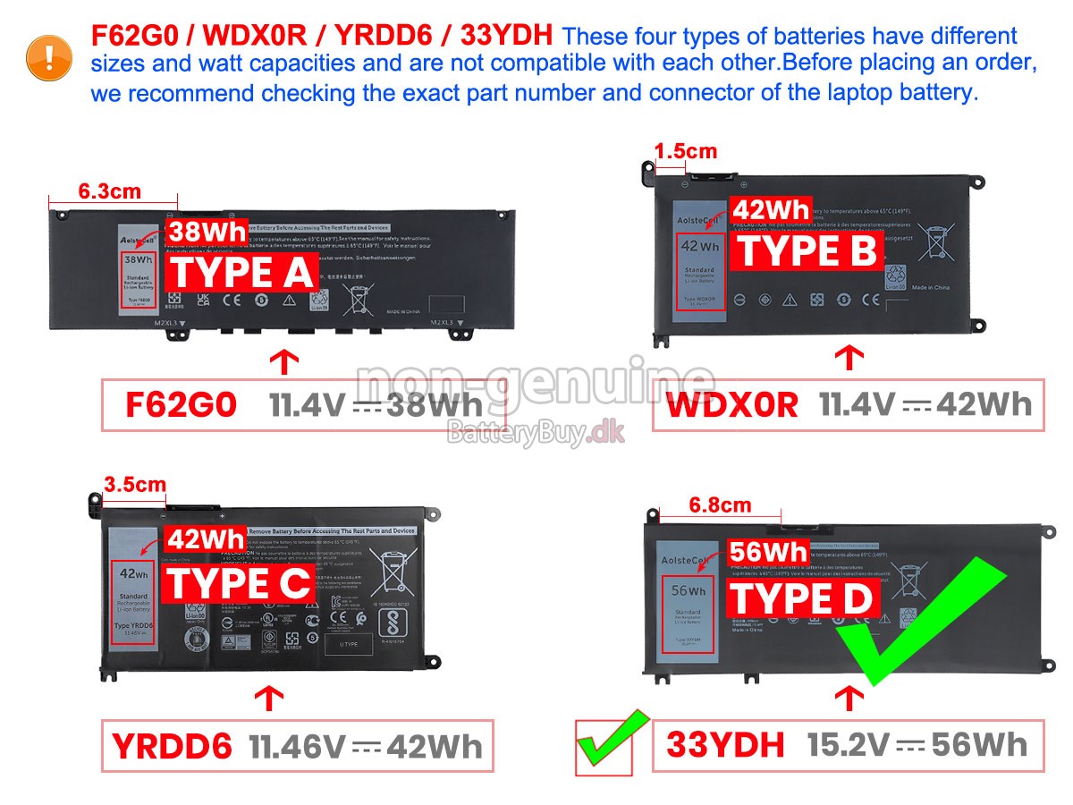 Derudover kan du se mere detaljerede billeder af dit laptop batteri Dell Inspiron 13 7000 2-IN-1 i "Se større billeder" eller se listen "Kompatibilitet" for at sikre, at du kan købe et erstatnings batteri til din bærbare computer.