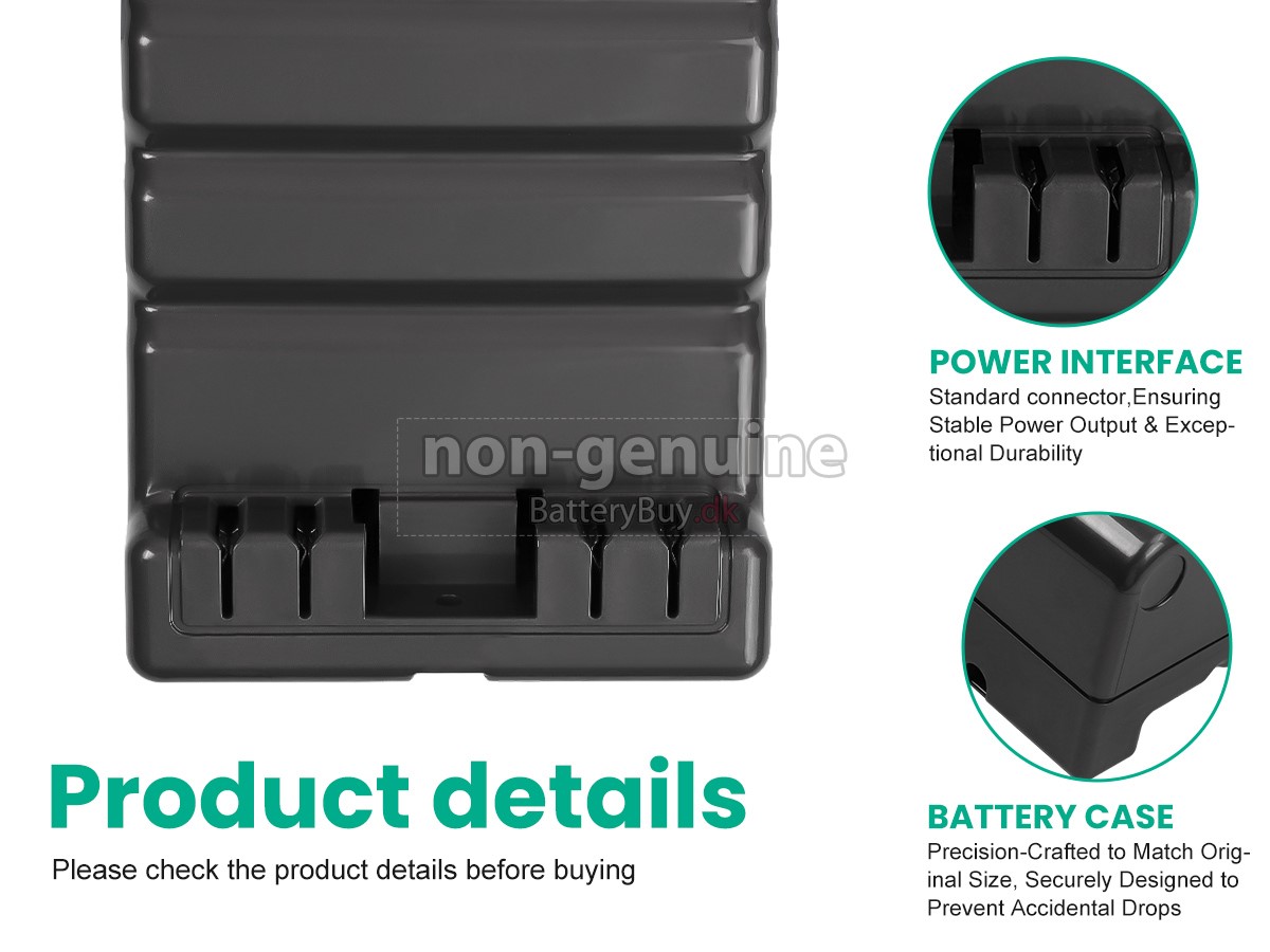 Derudover kan du se mere detaljerede billeder af dit batteri Dyson 49686-03 i "Se større billeder" eller se listen "Kompatibilitet" for at sikre, at du kan købe et erstatnings batteri til din støvsuger.