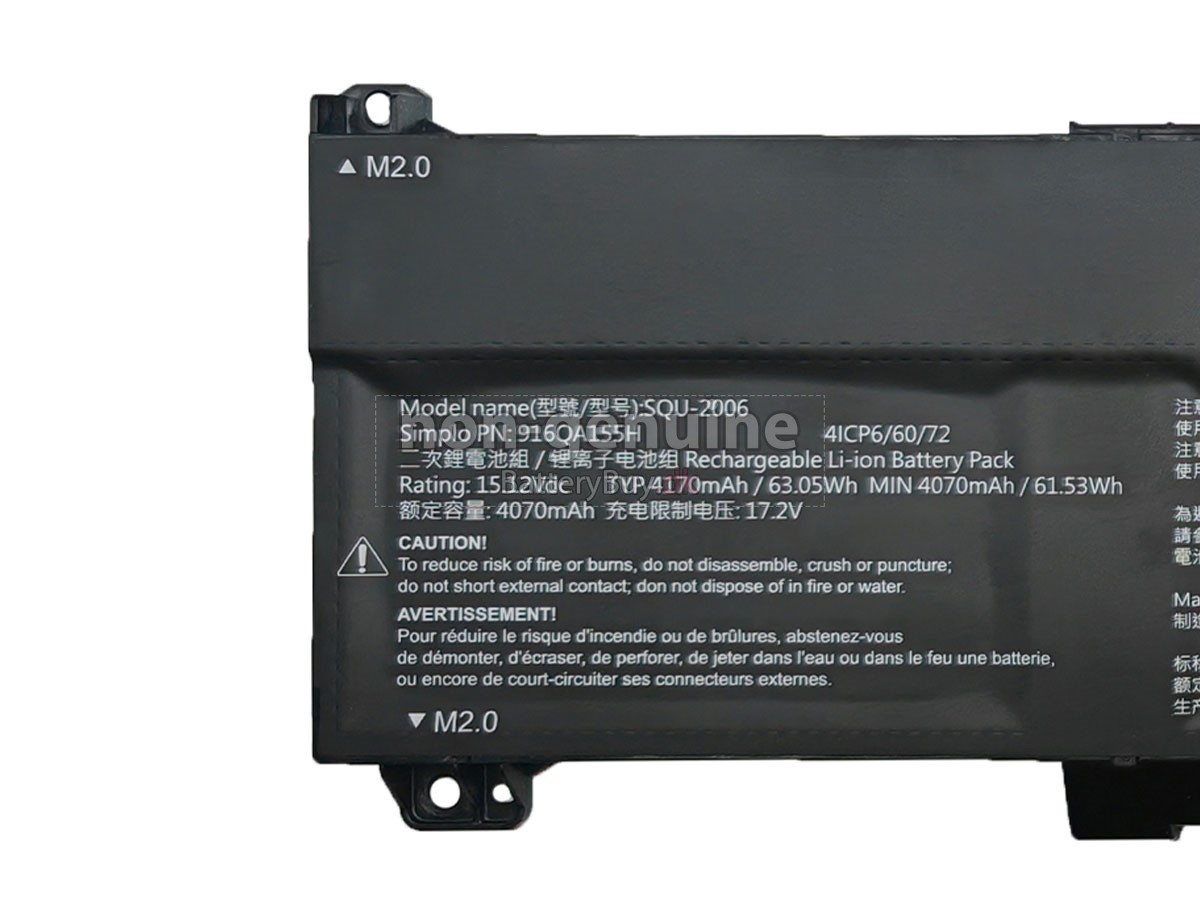 Batteri til Hasee SQU-2006 (63.05Wh, 4 celler)