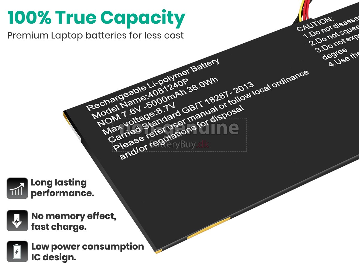 Nogle laptop batteriproducenter bruger ringere komponenter for at kunne tiltrække kunder til en lavere pris. At købe disse ringere batterier kan forårsage en række problemer som kort batterilevetid, vanskelig vedligeholdelse og endda skade på din yndlingscomputer. Men du behøver ikke bekymre dig, vi har testet HIPAA 4081240P laptop/Bærbar batteri fra mange forskellige producenter og er altid forpligtet til at give kunderne den højeste kvalitet bærbar computer batteri til HIPAA 4081240P . Vores HIPAA 4081240P batteri , der ses på BatteryBuy.dk-webstedet, skal testes med tre standardkvalitetskontroller. Vi tilbyder HIPAA 4081240P batteri , der opfylder eller overstiger OEM-specifikationer.