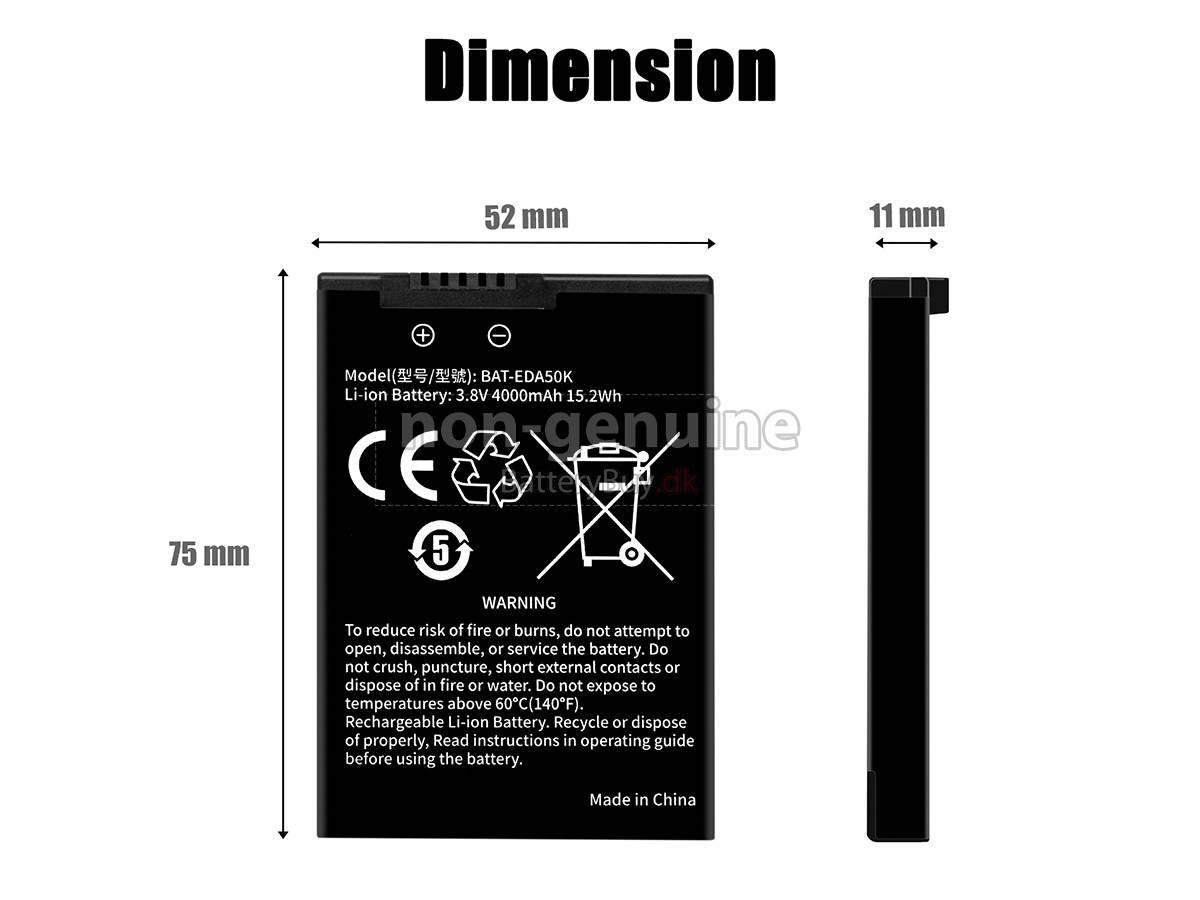 Derudover kan du se mere detaljerede billeder af dit batteri Honeywell BAT-EDA50US i "Se større billeder" eller se listen "Kompatibilitet" for at sikre, at du kan købe et erstatnings batteri til din udstyr.
