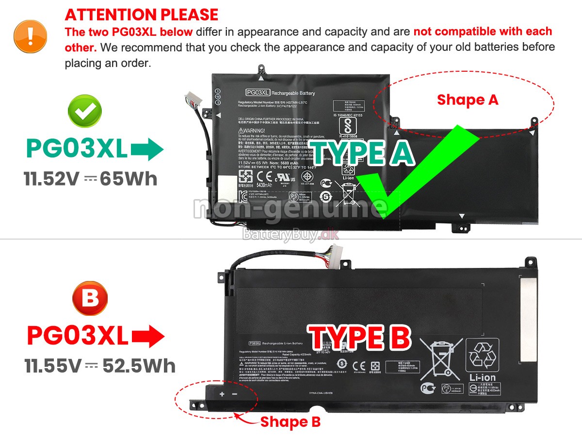 Derudover kan du se mere detaljerede billeder af dit laptop batteri HP PG03XL i "Se større billeder" eller se listen "Kompatibilitet" for at sikre, at du kan købe et erstatnings batteri til din bærbare computer.