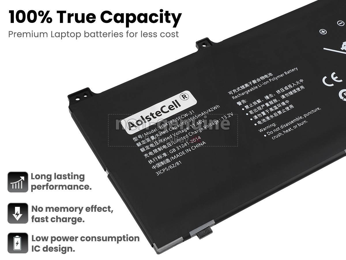Laptop batteri til Huawei BBR-WAH9 er lavet af ABS plastbelægning og original IC beskyttelse chip, som er ultra stor kapacitet, stabil og holdbar. De helt nye ægte laptop erstatnings batteri til Huawei BBR-WAH9, der sælges i denne butik, er alle fra professionelle producenter.Batterimaterialer leveres af topvirksomheder som Sony, Panasonic, Sanyo, and Samsung , Hvert Høj kvalitet Huawei BBR-WAH9 batteri til bærbare computere har bestået CE, UL og andre sikkerhedscertificeringer og har fremragende kvalitet, så du ikke mister Huawei's originale batteri. 30-dages refusionsgaranti og et års garanti, så du kan købe med tillid!