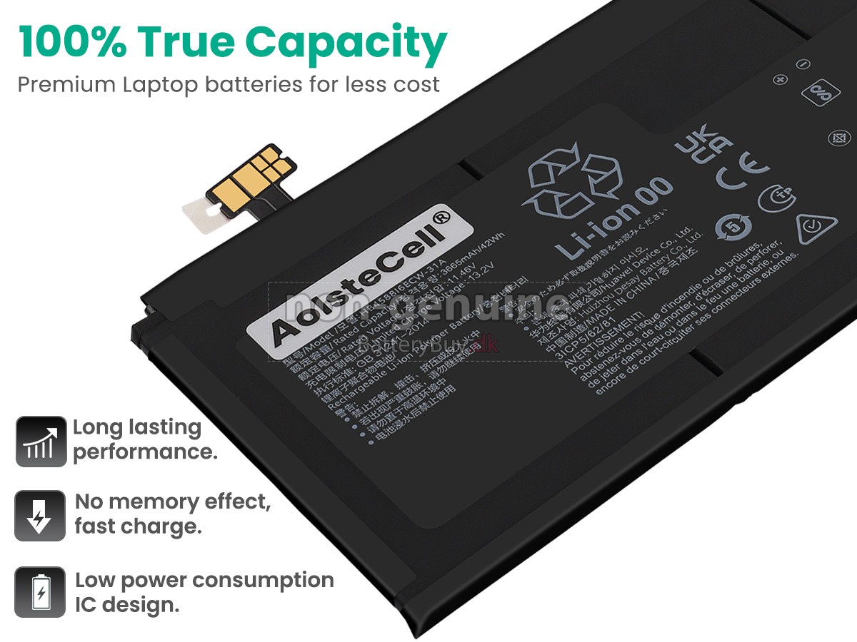 De erstatnings batteri til Huawei MATEBOOK E 2022 DRC-W76 , der sælges af BatteryBuy.dk, har en 30-dages refusionsgaranti og et års garanti. Vi giver dig mere end bare produkter, og du kan være sikker på. På Batterybuy.dk har vi et veluddannet kundeserviceteam, der er klar til at besvare dine spørgsmål til enhver tid. Hvis du har spørgsmål til vores hjemmeside eller produktioner under købsprocessen, kan du altid kontakte os via e-mail eller online chat. Uanset hvad, vil du få svar inden for 12 timer.