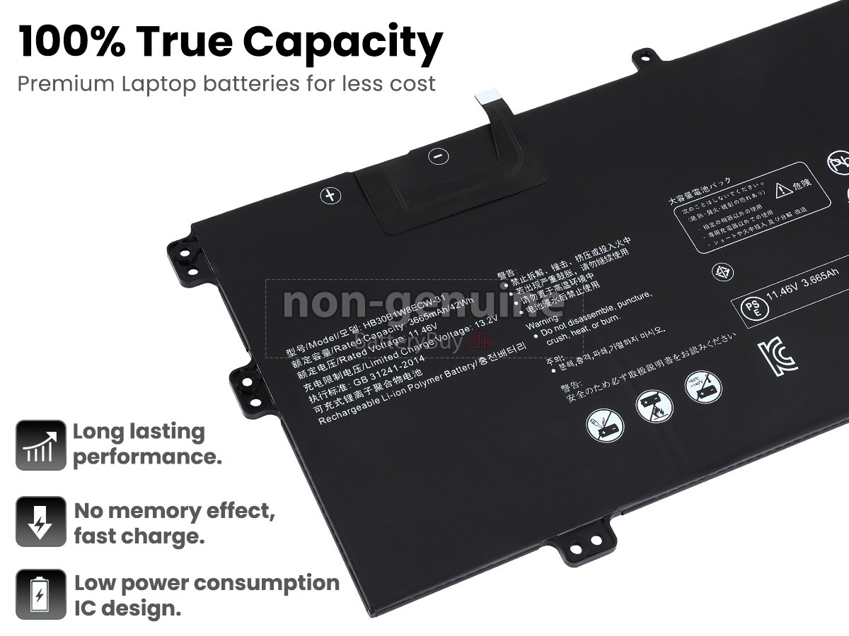 Nogle laptop batteriproducenter bruger ringere komponenter for at kunne tiltrække kunder til en lavere pris. At købe disse ringere batterier kan forårsage en række problemer som kort batterilevetid, vanskelig vedligeholdelse og endda skade på din yndlingscomputer. Men du behøver ikke bekymre dig, vi har testet Huawei MATEBOOK X 2020 laptop/Bærbar batteri fra mange forskellige producenter og er altid forpligtet til at give kunderne den højeste kvalitet bærbar computer batteri til Huawei MATEBOOK X 2020 . Vores Huawei MATEBOOK X 2020 batteri , der ses på BatteryBuy.dk-webstedet, skal testes med tre standardkvalitetskontroller. Vi tilbyder Huawei MATEBOOK X 2020 batteri , der opfylder eller overstiger OEM-specifikationer.