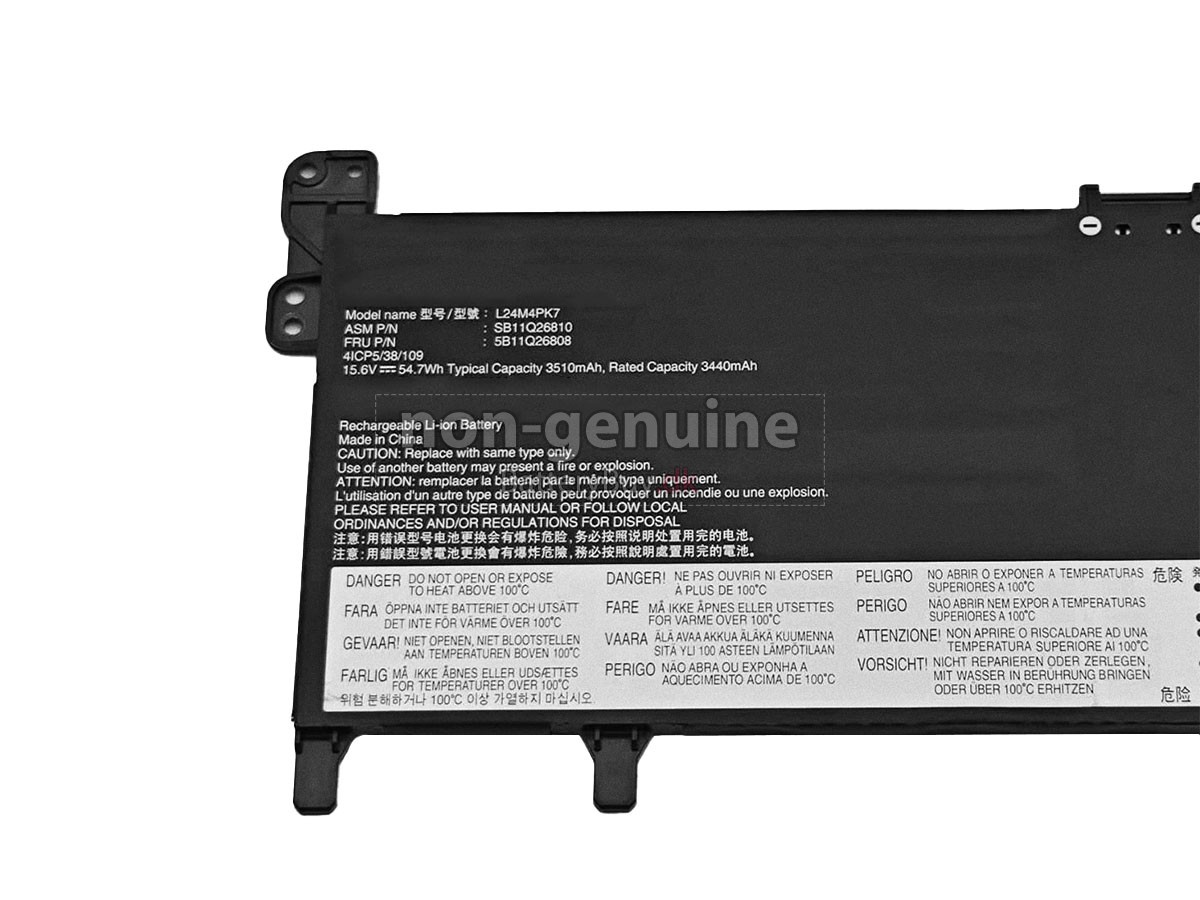 4Når den ikke er i brug i lang tid, skal Lenovo 5B11Q26808 batteri tages ud og placeres på et køligt og tørt sted, og der skal hver 2-3 måneder udføres en opladnings- og afladningscyklus for at forhindre skade forårsaget af overladning forårsaget ved naturlig udledning.