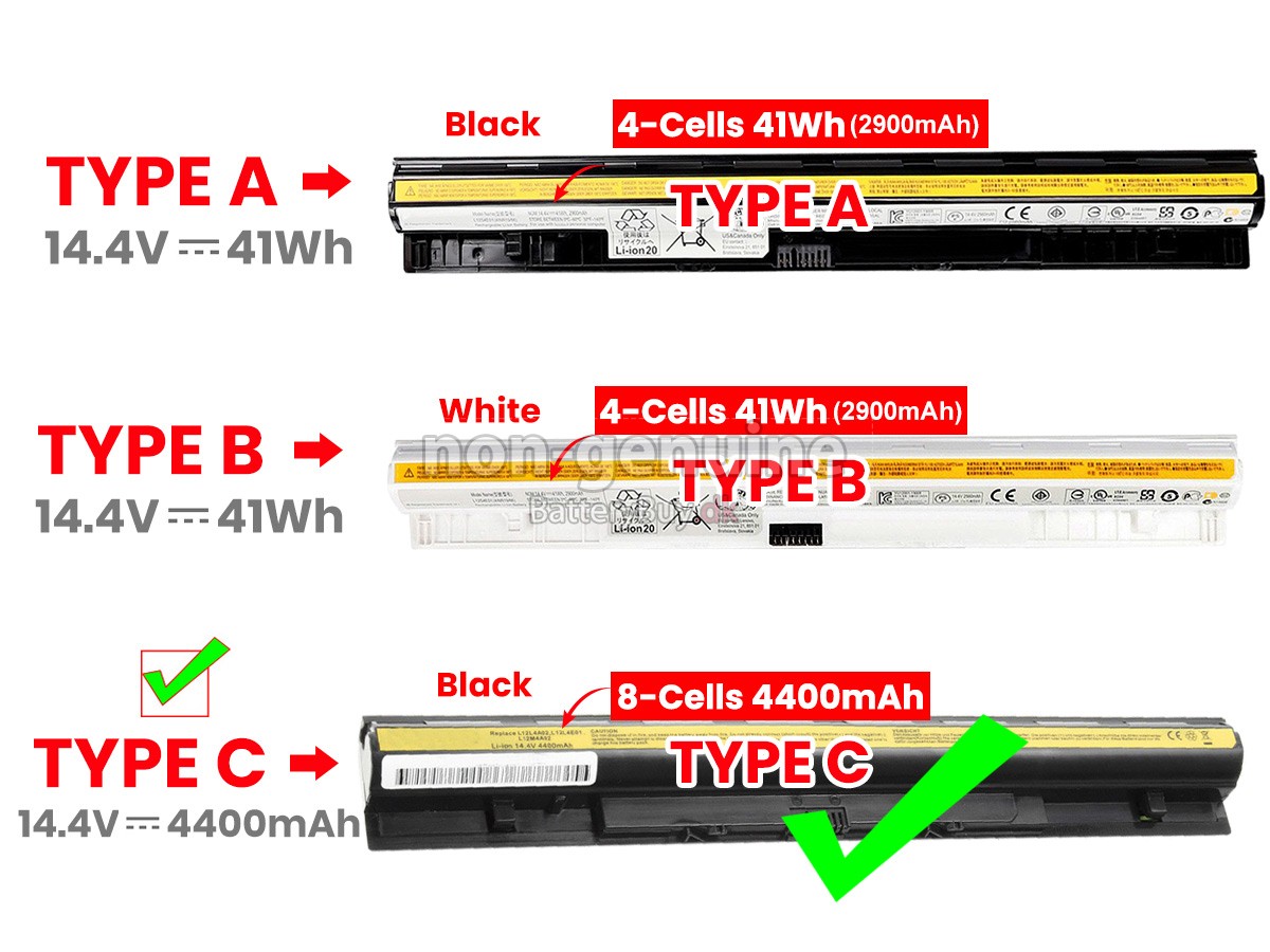 Derudover kan du se mere detaljerede billeder af dit laptop batteri Lenovo IdeaPad G50 i "Se større billeder" eller se listen "Kompatibilitet" for at sikre, at du kan købe et erstatnings batteri til din bærbare computer.