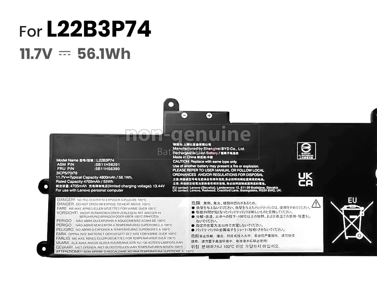 Hvert Høj kvalitet Lenovo L22D3P74 batteri er født med en beskyttelseschip. Når erstatnings batteri Lenovo L22D3P74 er produceret, vil det gennemgå en række tests som "overcharge", "resist voltage" og "short circuit". Efter flere skaljusteringer vil batteri til Lenovo L22D3P74 være fuldt kompatible med dine bærbare computere.