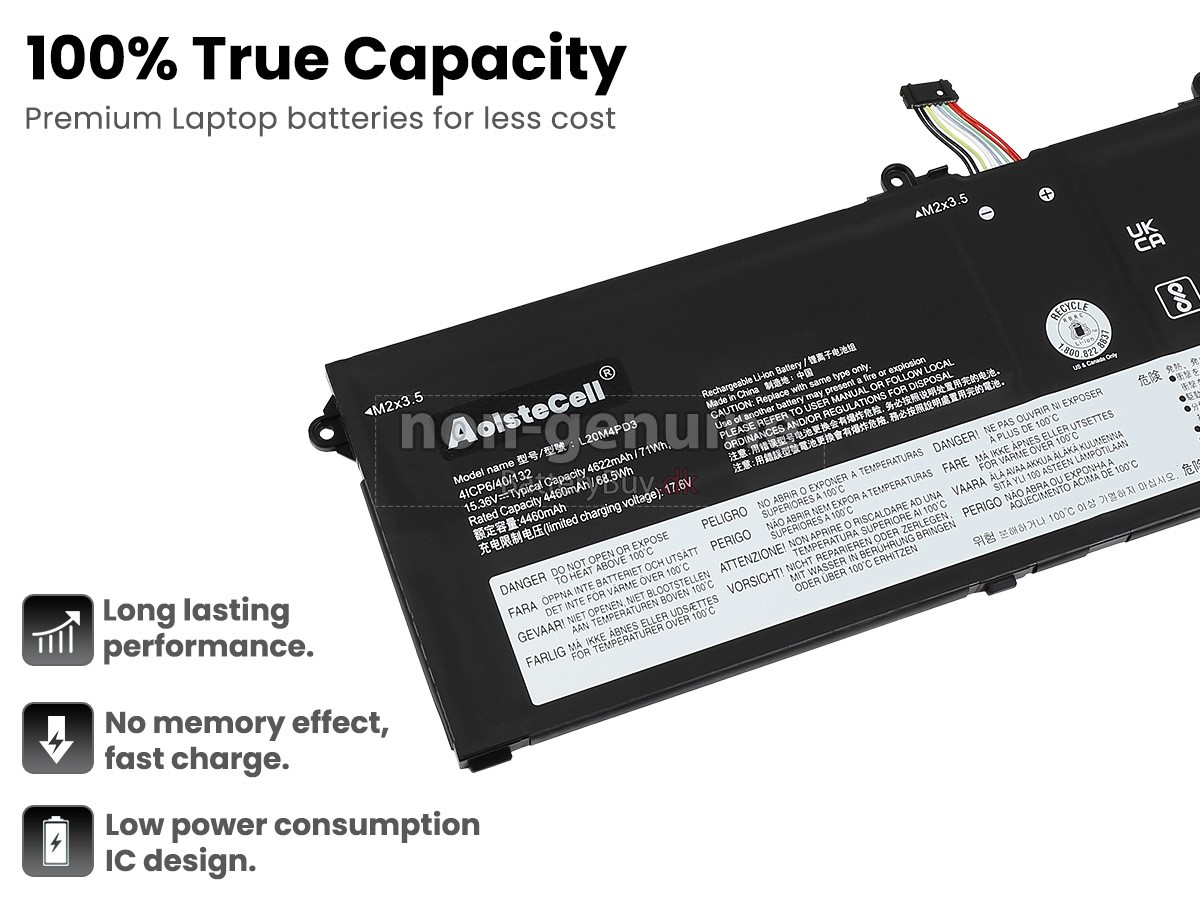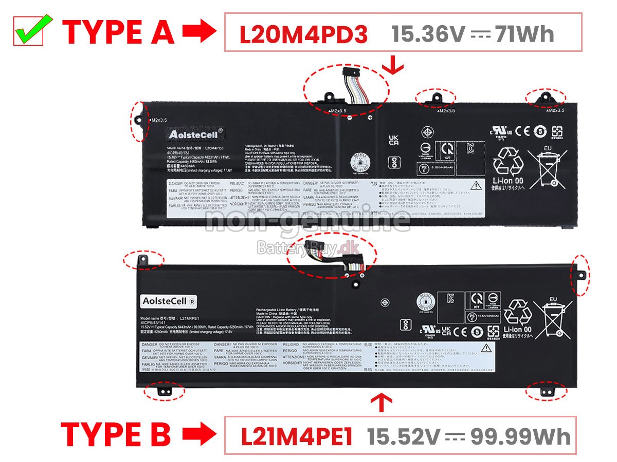 Derudover kan du se mere detaljerede billeder af dit laptop batteri Lenovo THINKBOOK 16P G2 ACH-20YM000BIV i "Se større billeder" eller se listen "Kompatibilitet" for at sikre, at du kan købe et erstatnings batteri til din bærbare computer.