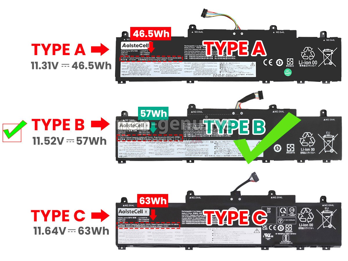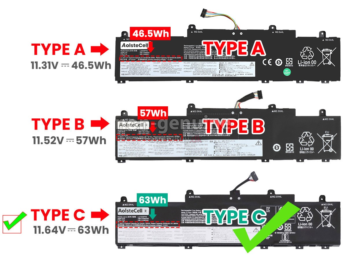Derudover kan du se mere detaljerede billeder af dit laptop batteri Lenovo ThinkPad L14 GEN 4-21H1003UAD i "Se større billeder" eller se listen "Kompatibilitet" for at sikre, at du kan købe et erstatnings batteri til din bærbare computer.
