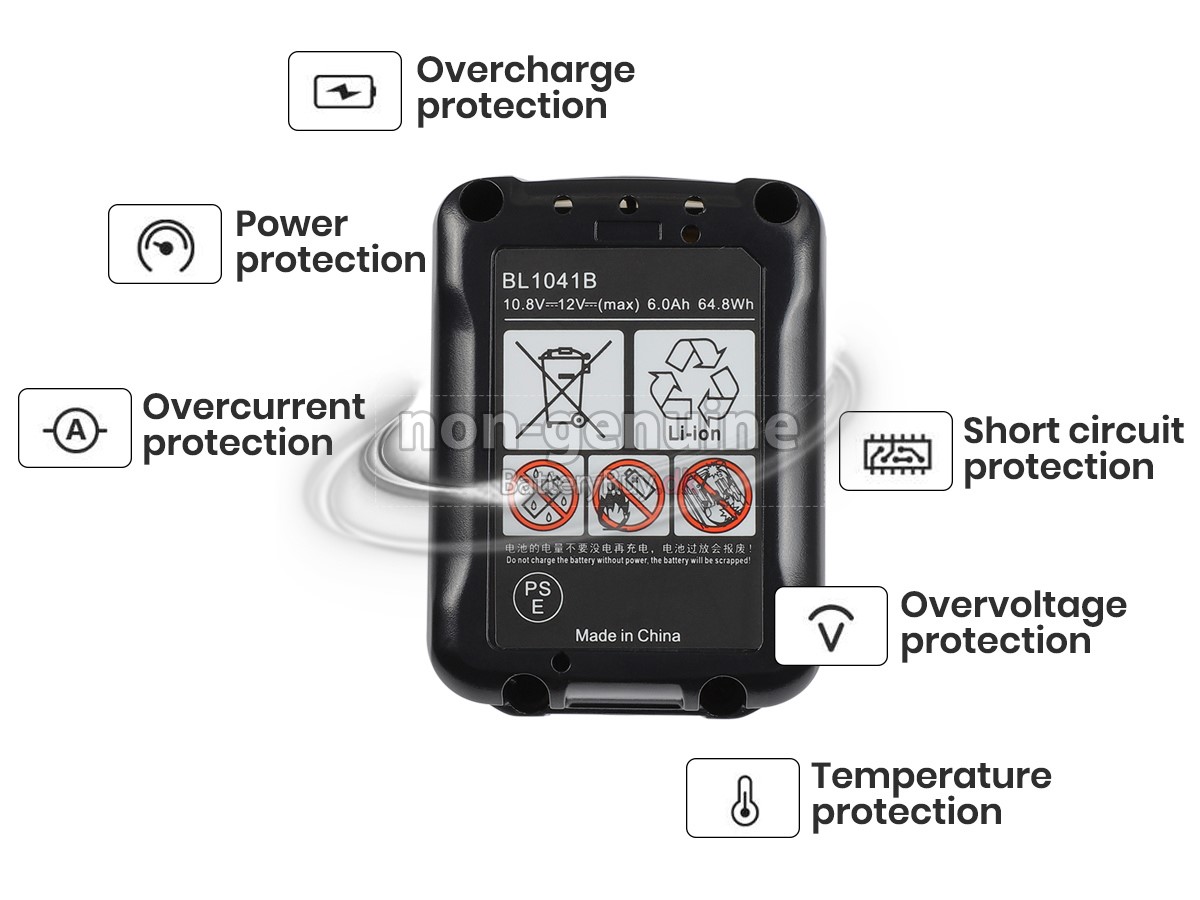 Hvert Høj kvalitet Makita BL1015B batteri er født med en beskyttelseschip. Når erstatnings batteri Makita BL1015B er produceret, vil det gennemgå en række tests som "overcharge", "resist voltage" og "short circuit". Efter flere skaljusteringer vil batteri til Makita BL1015B være fuldt kompatible med dine udstyr.