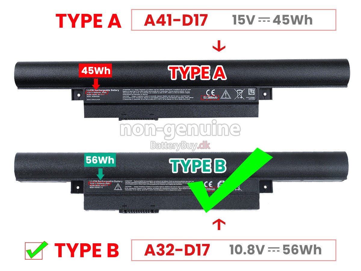 Nogle laptop batteriproducenter bruger ringere komponenter for at kunne tiltrække kunder til en lavere pris. At købe disse ringere batterier kan forårsage en række problemer som kort batterilevetid, vanskelig vedligeholdelse og endda skade på din yndlingscomputer. Men du behøver ikke bekymre dig, vi har testet Medion Akoya E7419 laptop/Bærbar batteri fra mange forskellige producenter og er altid forpligtet til at give kunderne den højeste kvalitet bærbar computer batteri til Medion Akoya E7419 . Vores Medion Akoya E7419 batteri , der ses på BatteryBuy.dk-webstedet, skal testes med tre standardkvalitetskontroller. Vi tilbyder Medion Akoya E7419 batteri , der opfylder eller overstiger OEM-specifikationer.