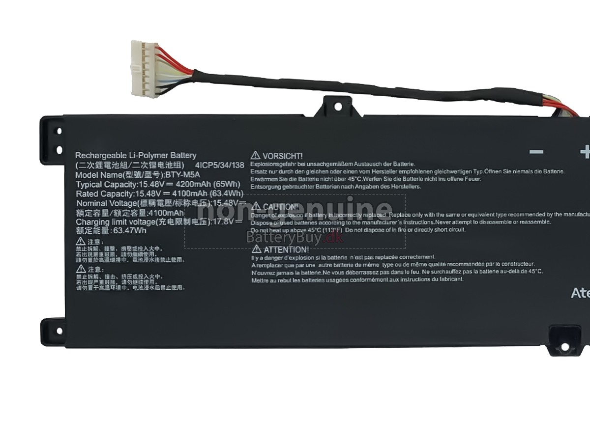 De erstatnings batteri til MSI BTY-M5A , der sælges af BatteryBuy.dk, har en 30-dages refusionsgaranti og et års garanti. Vi giver dig mere end bare produkter, og du kan være sikker på. På Batterybuy.dk har vi et veluddannet kundeserviceteam, der er klar til at besvare dine spørgsmål til enhver tid. Hvis du har spørgsmål til vores hjemmeside eller produktioner under købsprocessen, kan du altid kontakte os via e-mail eller online chat. Uanset hvad, vil du få svar inden for 12 timer.