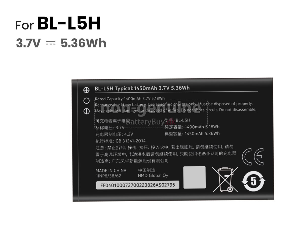De erstatnings batteri Nokia BL-L5H , der sælges af BatteryBuy.dk, har en 30-dages refusionsgaranti og et års garanti. Vi giver dig mere end bare produkter, og du kan være sikker på. På Batterybuy.dk har vi et veluddannet kundeserviceteam, der er klar til at besvare dine spørgsmål til enhver tid. Hvis du har spørgsmål til vores hjemmeside eller produktioner under købsprocessen, kan du altid kontakte os via e-mail eller online chat. Uanset hvad, vil du få svar inden for 12 timer.