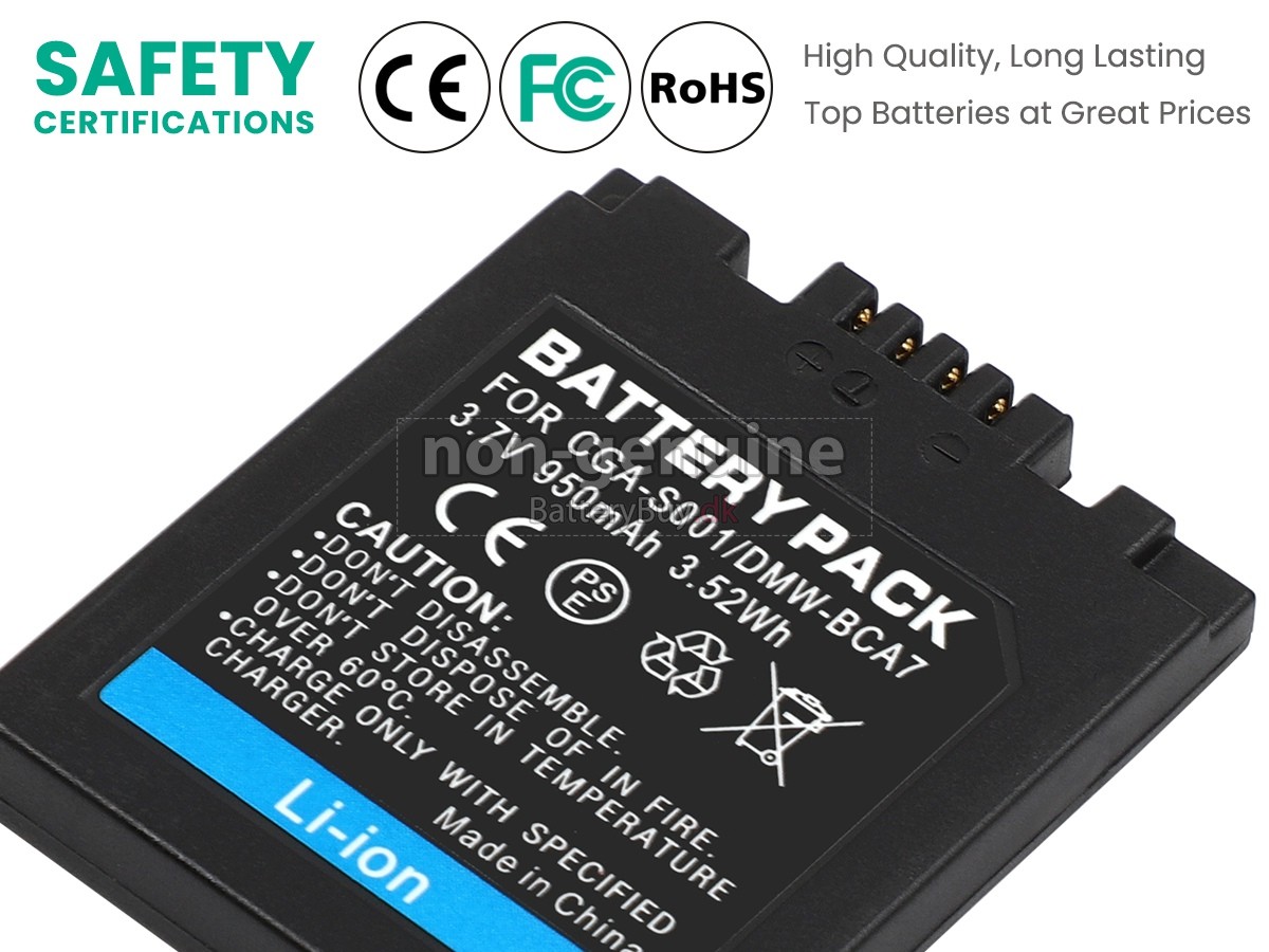 Batteri til Panasonic CGA-S001A er lavet af ABS plastbelægning og original IC beskyttelse chip, som er ultra stor kapacitet, stabil og holdbar. De helt nye ægte erstatnings batteri Panasonic CGA-S001A, der sælges i denne butik, er alle fra professionelle producenter.Batterimaterialer leveres af topvirksomheder som Sony, Panasonic, Sanyo, and Samsung , Hvert Høj kvalitet Panasonic CGA-S001A batteri har bestået CE, UL og andre sikkerhedscertificeringer og har fremragende kvalitet, så du ikke mister Panasonic's originale batteri. 30-dages refusionsgaranti og et års garanti, så du kan købe med tillid!