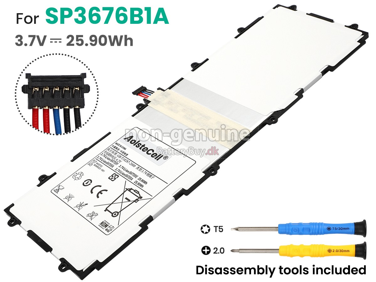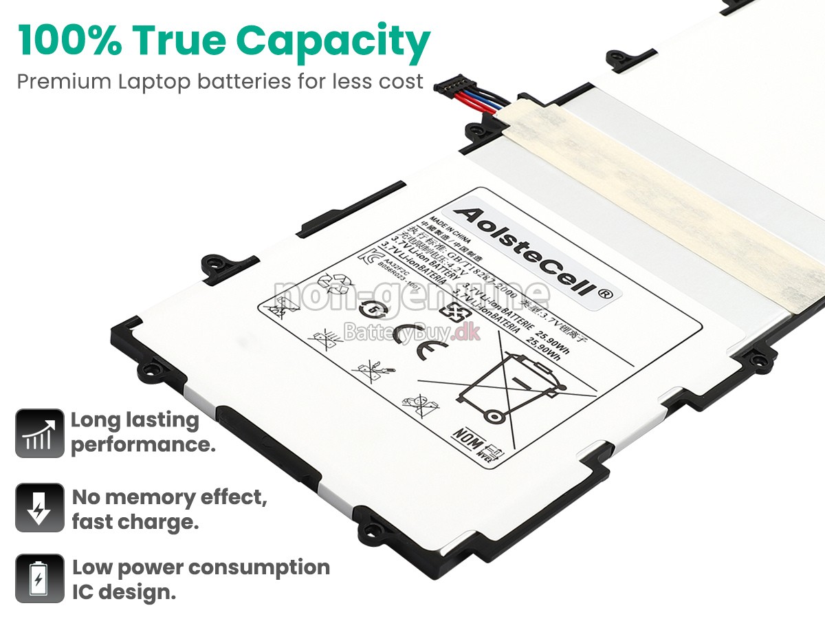 Derudover kan du se mere detaljerede billeder af dit laptop batteri Samsung GT-P7500 Galaxy TAB 10.1 i "Se større billeder" eller se listen "Kompatibilitet" for at sikre, at du kan købe et erstatnings batteri til din bærbare computer.