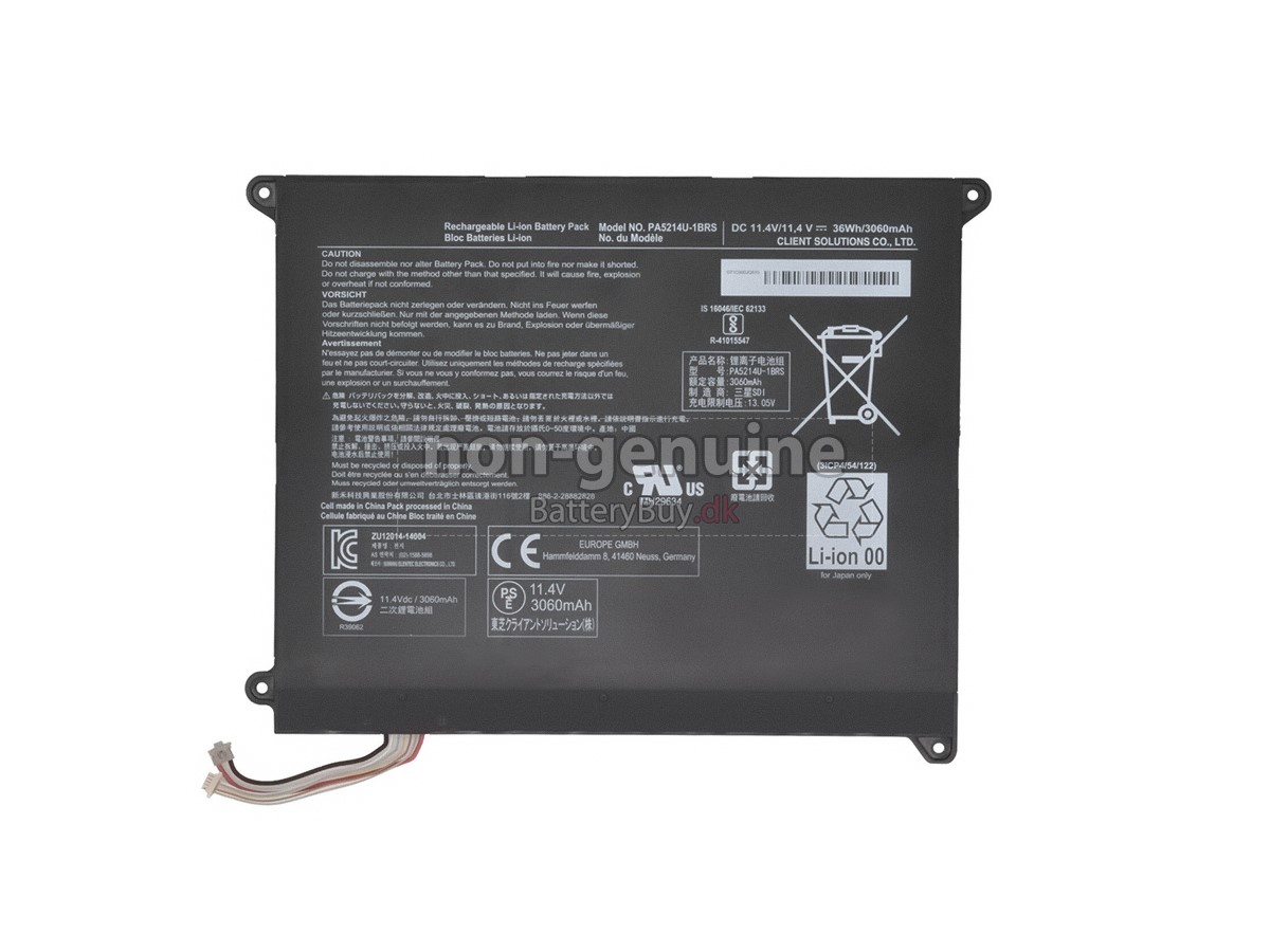 4Når den ikke er i brug i lang tid, skal Toshiba Portege Z20T-B-001 batteri tages ud og placeres på et køligt og tørt sted, og der skal hver 2-3 måneder udføres en opladnings- og afladningscyklus for at forhindre skade forårsaget af overladning forårsaget ved naturlig udledning.